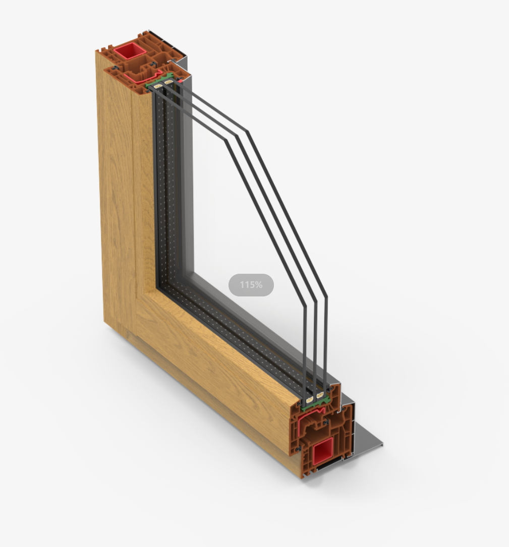 主型材厚度為76mm,采用6腔室結(jié)構(gòu)設(shè)計(jì);帶德國aluskin外扣鋁專利設(shè)計(jì),厚度達(dá)81mm。玻璃槽口厚度為39mm,三玻兩腔結(jié)構(gòu)。自帶的超高的保溫節(jié)能效果和隔音效果,降低空調(diào)及采暖使用頻率,滿足高靜謐居家生活舒適體驗(yàn);